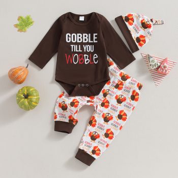 Baby Boys Girls Thanksgiving Outfit – Adorable Romper, Pants, and Hat Set