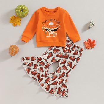 Kid Girls’ Long Sleeve Sweatshirt and Flare Pants Set – Adorable Outfit