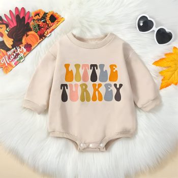 Infant Baby Thanksgiving Jumpsuit with Turkey & Letter Print – Long Sleeve Romper