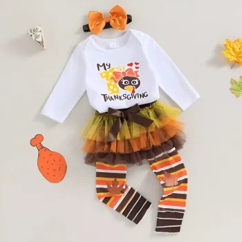 Baby Girls’ 3-Piece Thanksgiving Outfit Set – Fun and Stylish