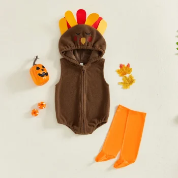 Adorable Baby Turkey Costume Sleeveless Hooded Romper with Foot Covers