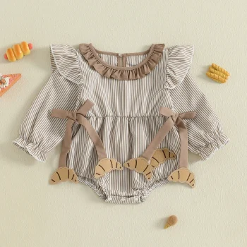 Newborn Baby Girl Thanksgiving Romper – Striped Long Sleeve Ruffle Bodysuit