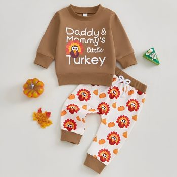 Toddler Thanksgiving Outfit Set – Turkey Print Sweatshirt & Pants