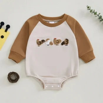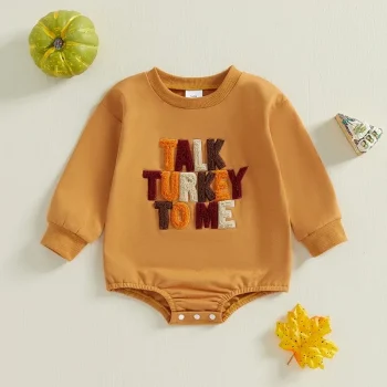 Baby Thanksgiving Romper Long Sleeve Embroidered Bodysuit for Boys & Girls