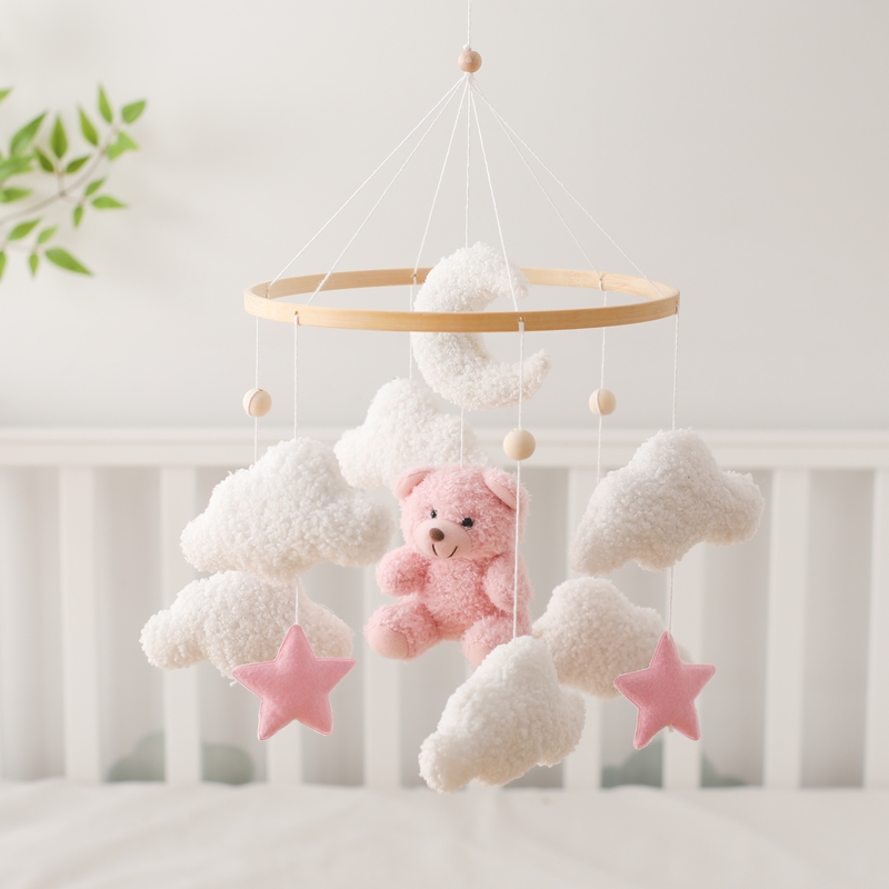 This wooden crib mobile rattle stands out for its blend of beauty, safety, and developmental value. Unlike plastic alternatives, it’s crafted from natural wood and soft crochet materials — free of harmful chemicals and perfectly safe for your baby’s delicate environment. Its minimalist Nordic-inspired design complements any nursery decor, making it both a practical and stylish choice for modern parents.