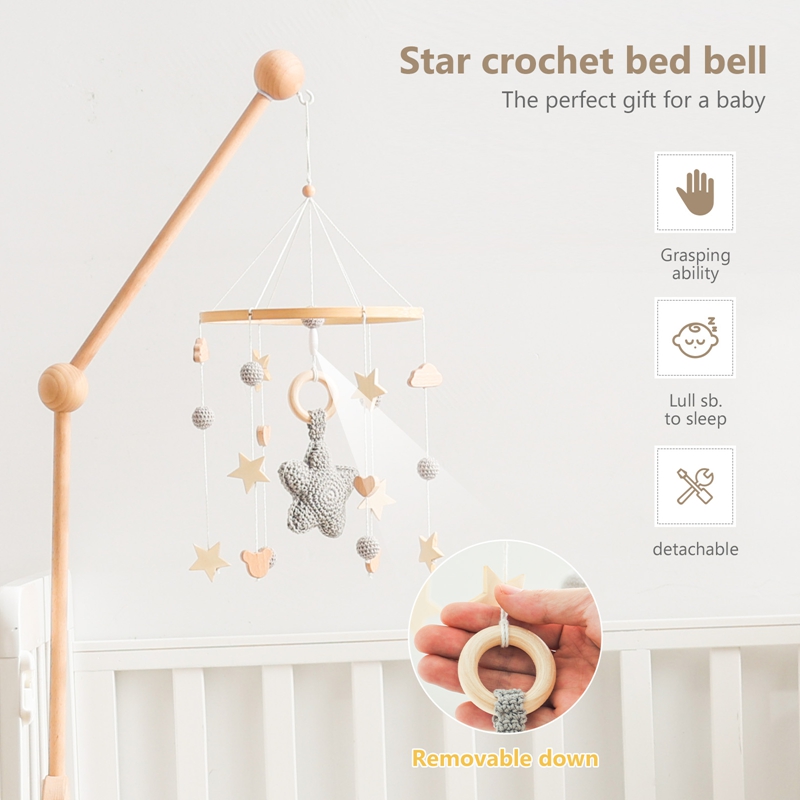 Create a calm, cozy atmosphere your baby will love with this beautifully designed wooden crib mobile arm with hanging rattle toys. Thoughtfully made for newborns and growing infants, this piece blends natural materials with a soft, playful design that feels warm and reassuring. From quiet nap times to curious wake-up moments, it adds both function and charm to your baby’s crib or bed.