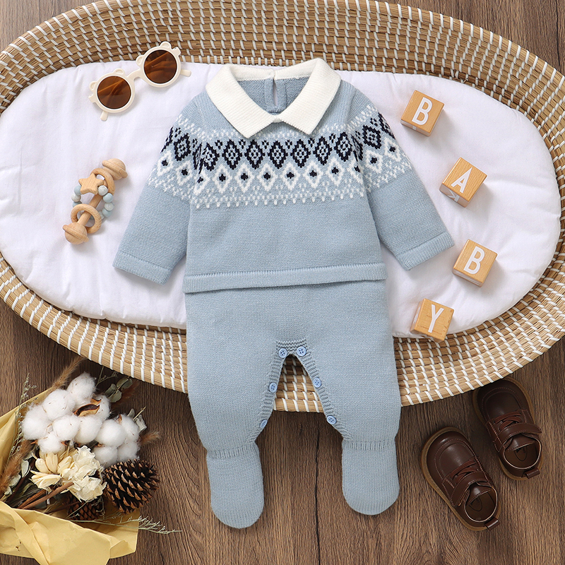 Wrap your little one in warmth, softness, and timeless style with this beautifully designed baby romper. Made for newborns and infants up to 9 months, this cozy one-piece combines a charming geometric pattern with a classic turn-down collar for a polished, adorable look. The knitted fabric feels gentle against delicate skin while offering just the right amount of stretch for easy movement. Whether it’s a quiet day at home or a special outing, this romper keeps your baby comfortable and cute from morning to night.