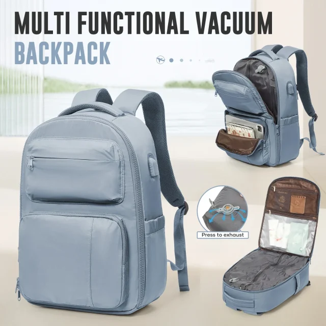 Meet the ultimate travel backpack designed for modern explorers who want to carry more without the bulk. This vacuum compression backpack lets you fit extra clothes, gear, and essentials into a compact carry-on size. With a built-in vacuum pump system, you can reduce the volume of your packed items in seconds, keeping everything neat, organized, and easy to carry.