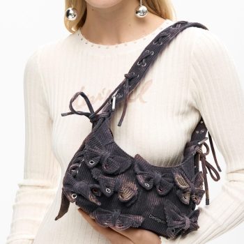 Desigual Medium Cotton Bow Shoulder Bag in Purple