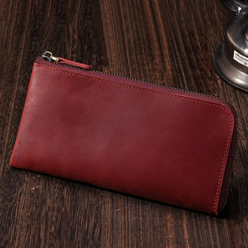 Vintage Zipper Closure Crazy Horse Leather Unisex Long Wallet with Multi-Card Slots