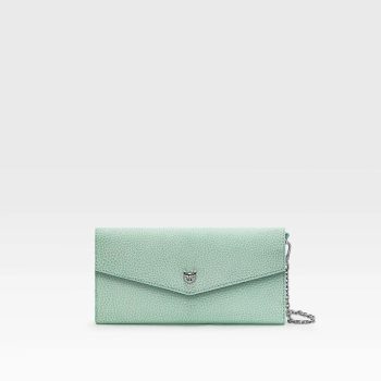 Genuine Leather Chain Handle Long Wallet with Multi Compartments