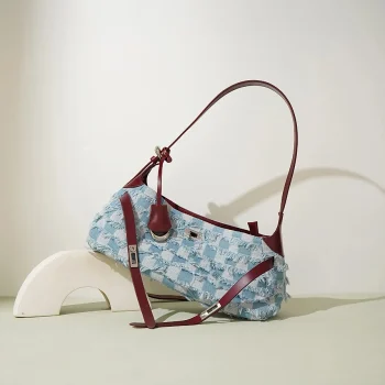 Soft Denim Leather Crossbody Shoulder Bag with Purse for Women