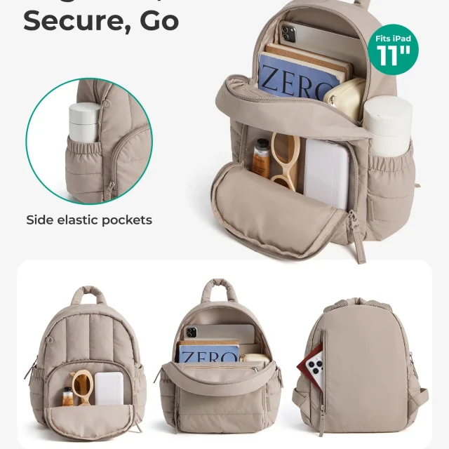 Step out with confidence carrying this lightweight quilted mini backpack purse—your new go-to companion for daily plans, spontaneous outings, campus life, and travel adventures. Designed with a trendy puffy look and compact silhouette, this small daypack blends fashion with effortless practicality. Measuring 9.4×4.7×12.2 inches and weighing only 0.66 lbs, it keeps things light while offering smart storage for everything you need on the go. The water-resistant exterior and stylish quilted finish make it both eye-catching and dependable, while the front D-ring lets you personalize your look with charms or accessories.