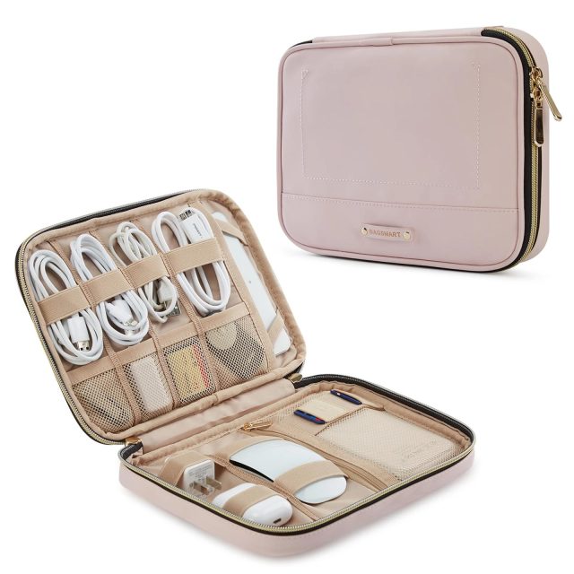 This organizer offers a well-thought-out layout to keep your electronics safe and accessible. Featuring 7 slip-resistant elastic loops, it securely holds cables, chargers, and even a mouse. A padded pocket is specially designed for your 7.9″ iPad Mini, while mesh compartments, SD card holders, and elasticized segments provide flexibility for all your small accessories. The two-way zipper closure allows for quick access, making it easy to grab what you need without any hassle.
