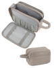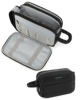 Measuring 10.04 x 6.1 x 4.13 inches, this toiletry bag features three spacious compartments to keep your items neatly organized. The front compartment includes an elastic shoulder strap for makeup brushes and two mesh pockets for easy access to smaller items. The roomy center compartment is perfect for larger cosmetics, and it includes five additional pockets of varying sizes for lipsticks, blushes, and other essentials. The back compartment is crafted from waterproof material, making it ideal for wet items like towels, toothbrushes, and toiletries, ensuring everything stays neat and dry.