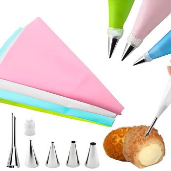 Silicone Pastry Bag Set with 5 Icing Tips – Reusable Cake Decorating Kit
