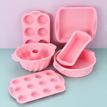 Pink Nonstick Silicone Bakeware Set – 6-Piece Baking Essentials Kit