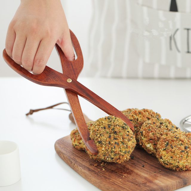 These bamboo food scissors are a must-have for any kitchen. Use them when serving salad at family dinners, flipping burgers on the grill, or picking up fresh bread and pastries without getting your hands greasy or burned. Their elegant wooden design complements any kitchen décor — from rustic to modern.