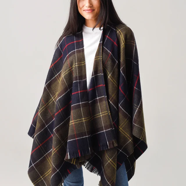 Crafted from 100% super-soft acrylic, this serape offers a gentle, luxurious feel against your skin without weighing you down. Its mid-weight design makes it an ideal choice for spring, fall, or those unpredictable in-between days. The oversized Barbour house tartan print adds a touch of British sophistication, while the tasseled hem completes the look with effortless flair.