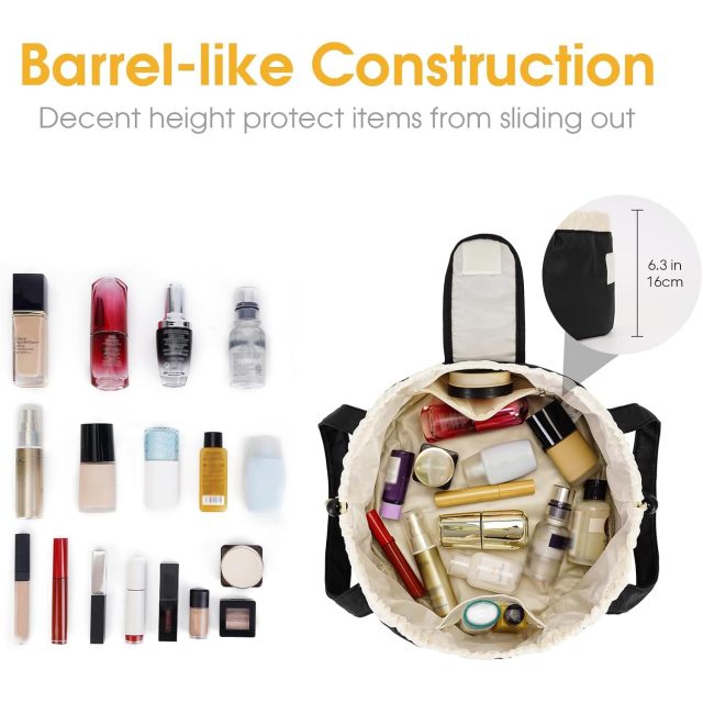 Meet your new favorite travel companion – the Large Capacity Drawstring Makeup Bag. Designed for modern women who love convenience and elegance, this smart barrel-shaped organizer keeps all your cosmetics, skincare, and toiletries neatly arranged wherever you go. Whether you’re packing for a weekend getaway, a long trip, or simply tidying up your vanity at home, this bag offers the perfect blend of functionality and fashion.