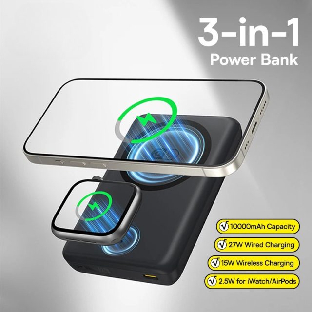 27W Magnetic Power Bank for iPhone & Apple Watch, 10000mAh Wireless Charger