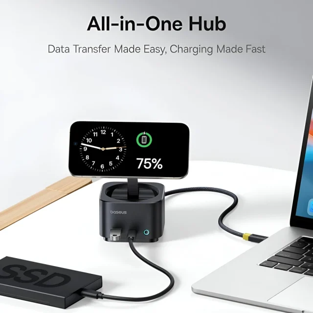 Use it at your desk to keep everything connected, or slip it into your bag for on-the-go efficiency. Whether you’re a remote worker, digital creative, or someone who values convenience, this hub ensures you never run out of power, ports, or productivity.