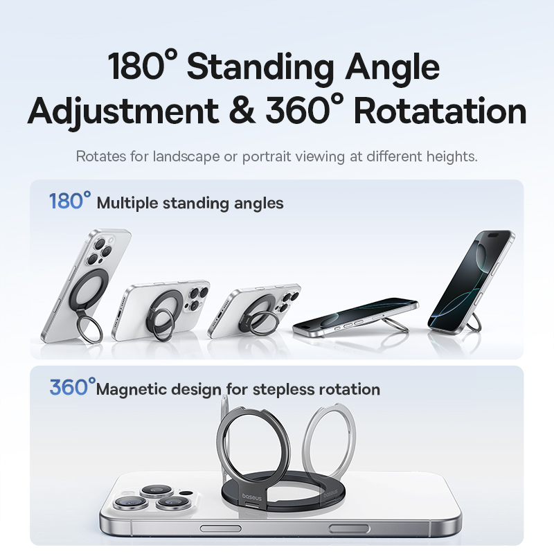 This phone holder features a slim, low-profile build that stays comfortable in your hand and pocket while offering a reliable hold. The built-in magnetic plate attaches effortlessly to compatible devices and keeps your phone steady wherever you go. Its smooth rotating ring makes it easy to adjust angles for better viewing, filming, or video chatting.
