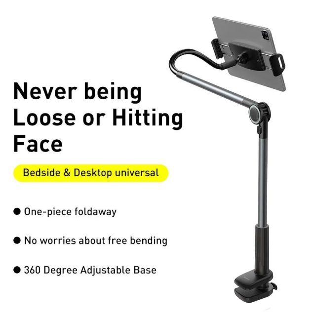 Baseus Mobile Phone Holder Lazy Tablet Stand for iPhone 17 16 15 Pro Max Bed Desktop Clip Long Arm Table Bracket for iPad Holder