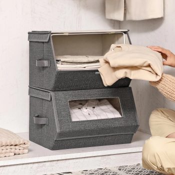 Stackable Fabric Storage Bins with Lids and Clear Front Windows, Set of 2