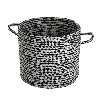 Handwoven Cotton Rope Storage Basket with Handles, Black & White, 10L