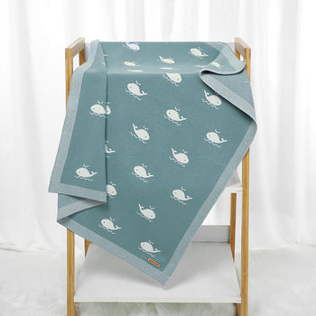 Soft Knitted Baby Blanket 35×27 Inch Cartoon Whale Swaddle Quilt