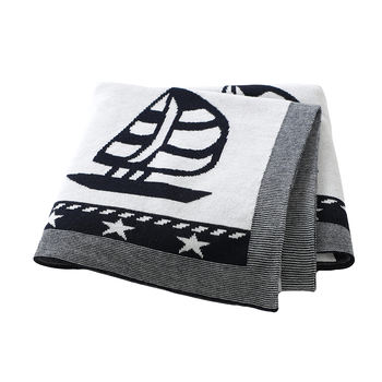 Soft Cotton Knitted Baby Blanket – Anchor & Sailboat Design 40×32 Inch