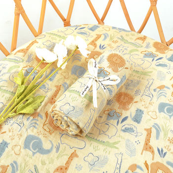 Soft Cotton Muslin Baby Swaddle Blanket – Animal Print 47″ x 43″