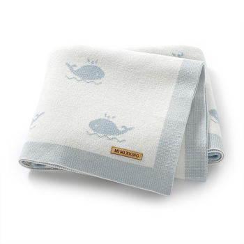Soft Knitted Baby Blanket 35x28in – Cozy Cartoon Whale Swaddle Wrap