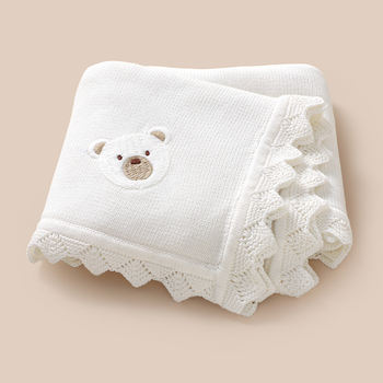 Cotton Knitted Baby Blanket with Cute Bear Design 35×27 Inch