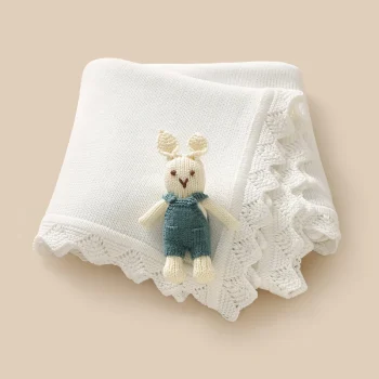 Baby Knit Blanket with 3D Bunny – Soft Cotton Swaddle Wrap for Newborns