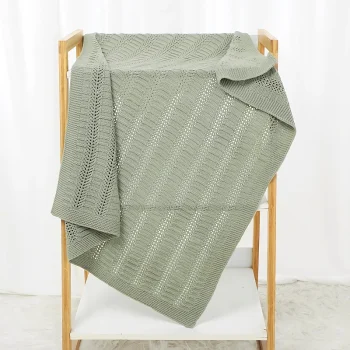 100% Cotton Knit Baby Blanket – Soft Hollow Out Crib Quilt