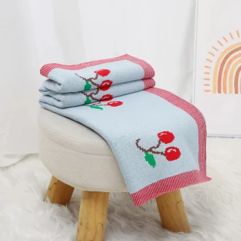 Super Soft Cotton Knit Baby Blanket with Cute Cherry Design 35x28in