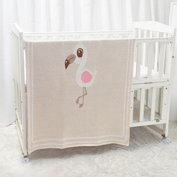 Super Soft Cotton Knit Newborn Baby Blanket – Flamingo Plaid Swaddle Wrap