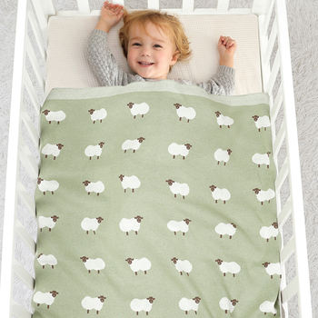 Soft Cotton Knit Baby Blanket – Cute Cartoon Sheep Design for Newborns, 35.4” x 27.6”