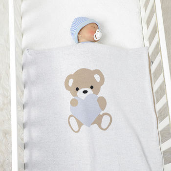 Soft Cotton Knit Baby Blanket for Boys & Girls – Plaid Cartoon Bear Swaddle 35″x27″ Newborn Bedding