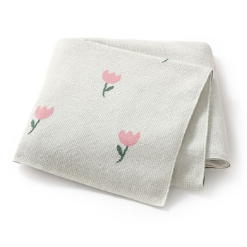 Soft Cotton Knit Baby Blanket – Tulip Design, 40x32in Newborn Swaddle Quilt