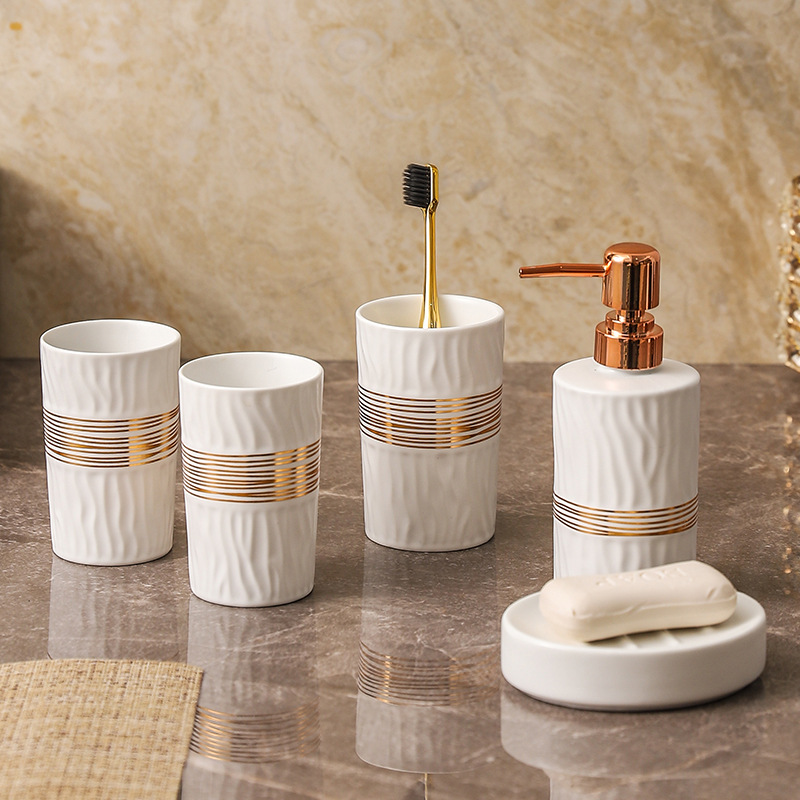 Transform your daily routine into a spa-like experience with this elegant ceramic bathroom and toiletries set. Designed to keep your essentials organized and easily accessible, this set includes a mouthwash cup and a toothbrush cup, perfect for both home and hotel use. Its sleek and timeless design adds a touch of sophistication to any bathroom decor, making it more than just a functional accessory.