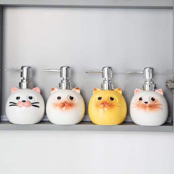 Adorable Ceramic Cat Soap Dispenser – Cartoon Animal Lotion & Shampoo Bottle