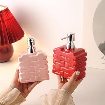 Elegant European Red Ceramic Soap Dispenser for Bathroom & Kitchen