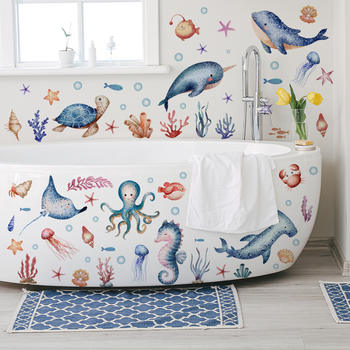 Cartoon Sea Turtle & Seahorse Wall Stickers for Kids’ Room & Bathroom