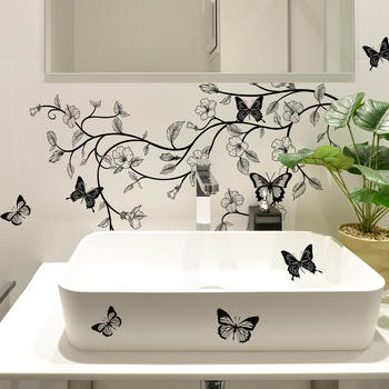 Romantic 3D Floral & Butterfly Wall Decal – DIY Home Art Decoration