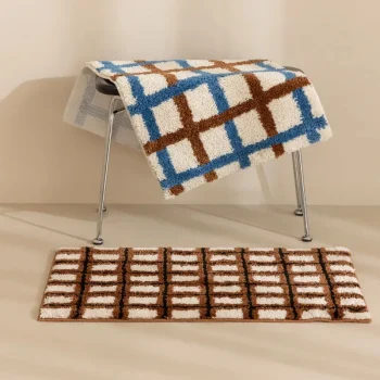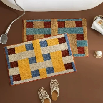 Retro Geometric Tufted Bathroom Mat – Soft Non-Slip Aesthetic Rug