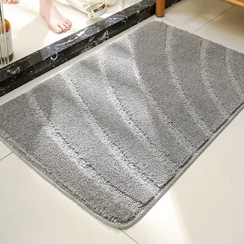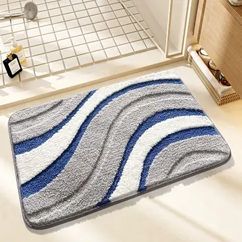 Plush Striped Anti-Slip Bathroom Floor Mat, Machine Washable