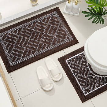 2-Piece Striped Anti-Slip Flocking Bathroom & Toilet Mat Set